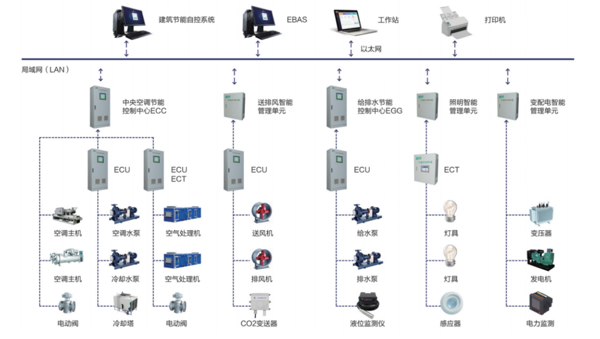 智慧园区系统解决方案包含冷热高效机房智能管理系统、空调末端节能管控系统、风盘温控管理系统、送排风管控系统、智能照明管控系统、生活热水管控系统、给排水监管系统等子系统,从而实现暖通空调、蒸汽热水、给排水、送排风、智能照明、智能配电、新能源等系统进行节能优化升级,降低运营成本,提高管理效率和质量。达到“能源供应清洁化、能源消费数字化、能源利用高效化、能源配置智慧化、能源服务多元化”的管理目标。